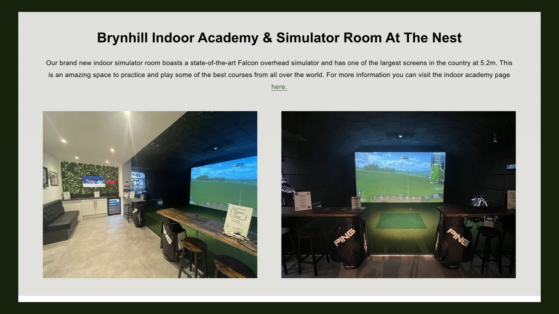 The simulator has already paid for itself and remains a facility that sets us apart from many other clubs. Recently labelled by a Callaway fitting rep as one of the best in the country.