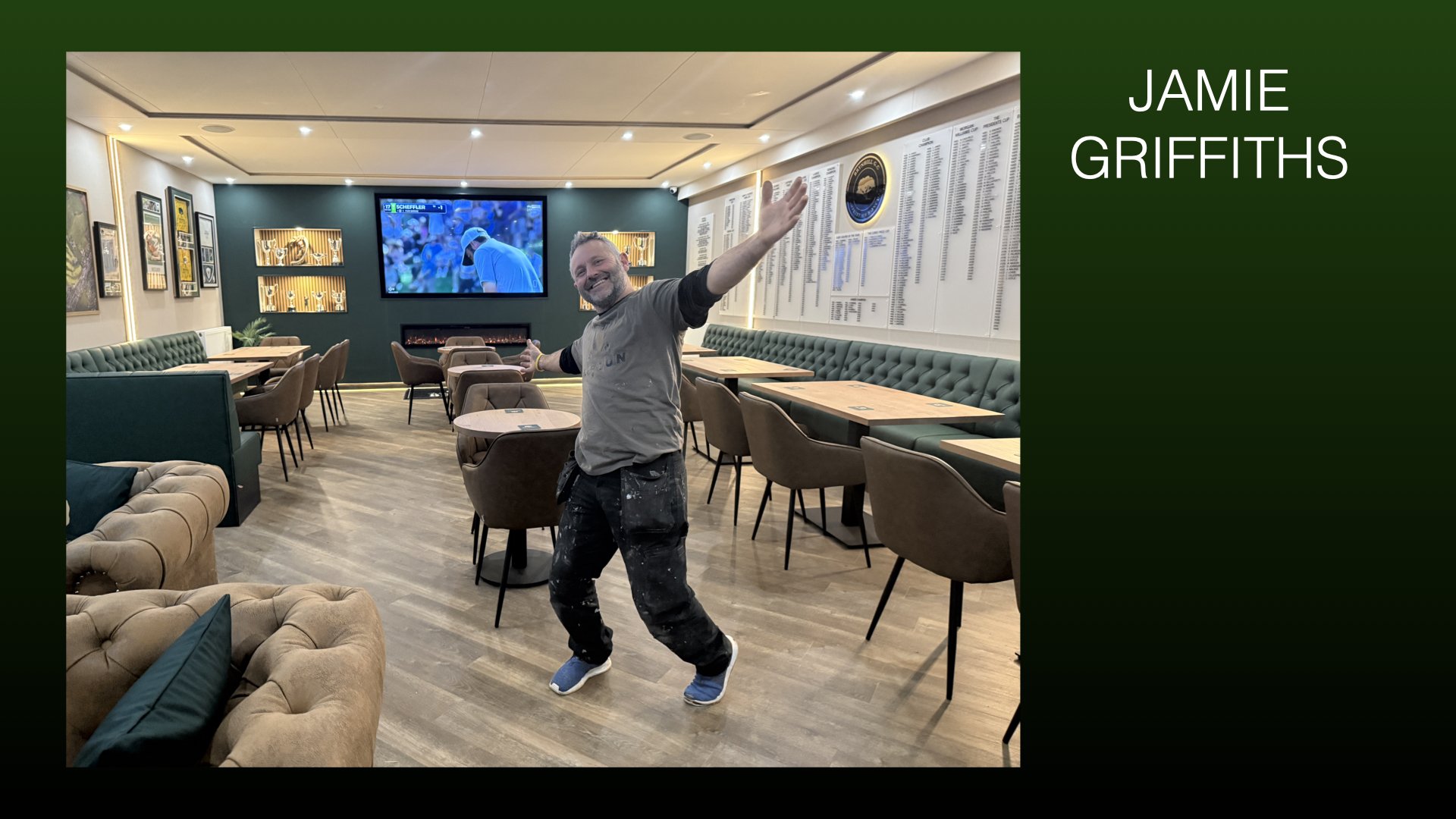 His work across multiple areas — including the foyer, simulator room, lounge, ladies locker room, storage cabin, and current Sports Bar development and West Wing — is clearly elevating the club’s environment and reputation.