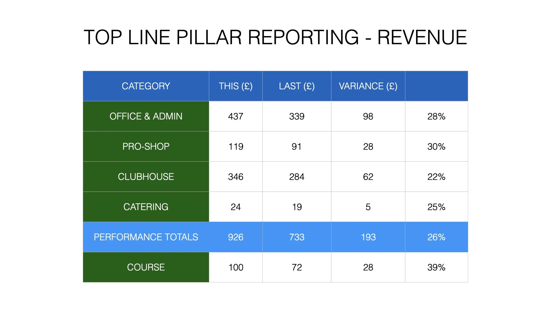 Key takeaway: while these figures represent revenue, they also highlight the growth achieved across each department, with an average increase of 26%.