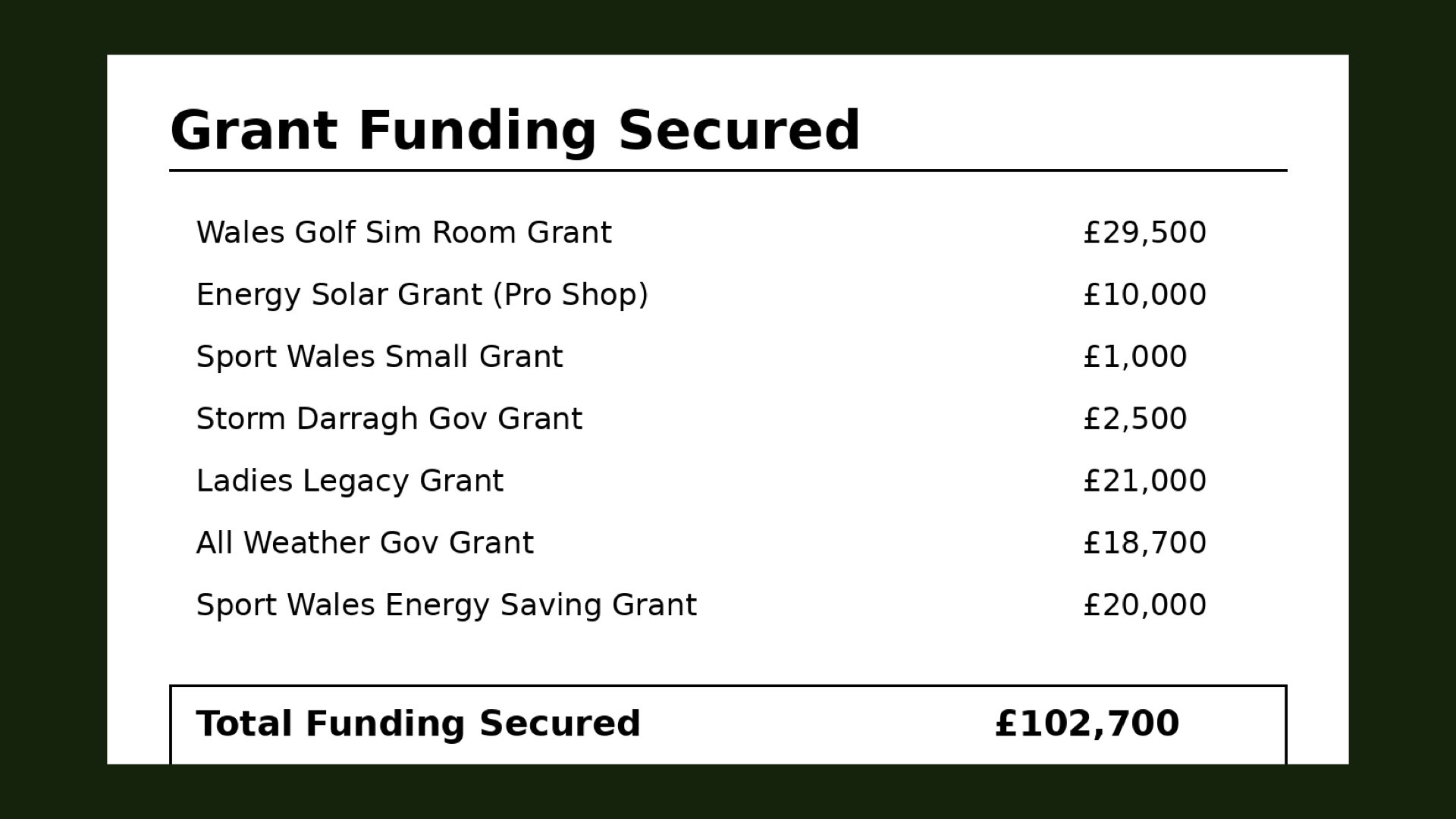 Our most recent funding success — the £20k Sport Wales Energy Grant — has now been received.