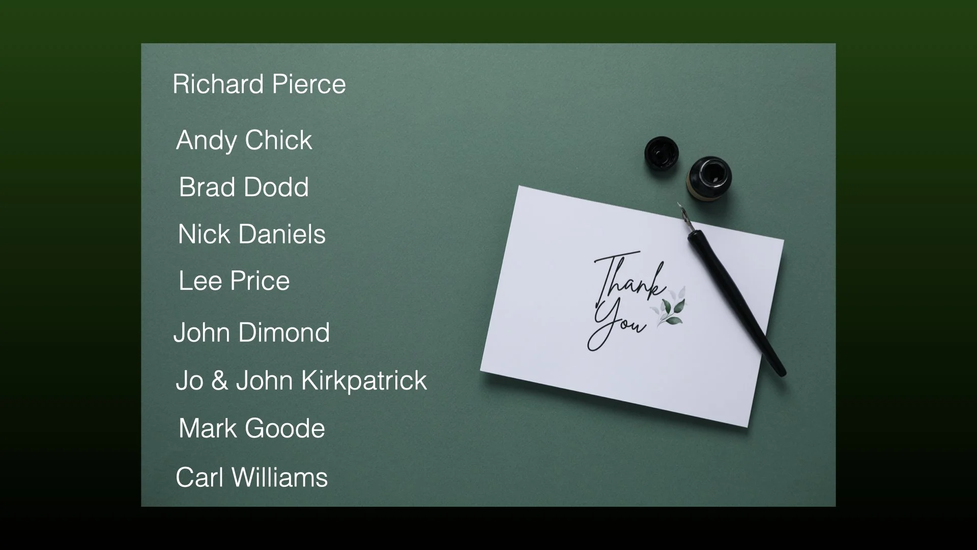 > Jo & John Kirkpatrick - thank you for all what you continue to do for the club including making sure tonight runs smoothly for us.