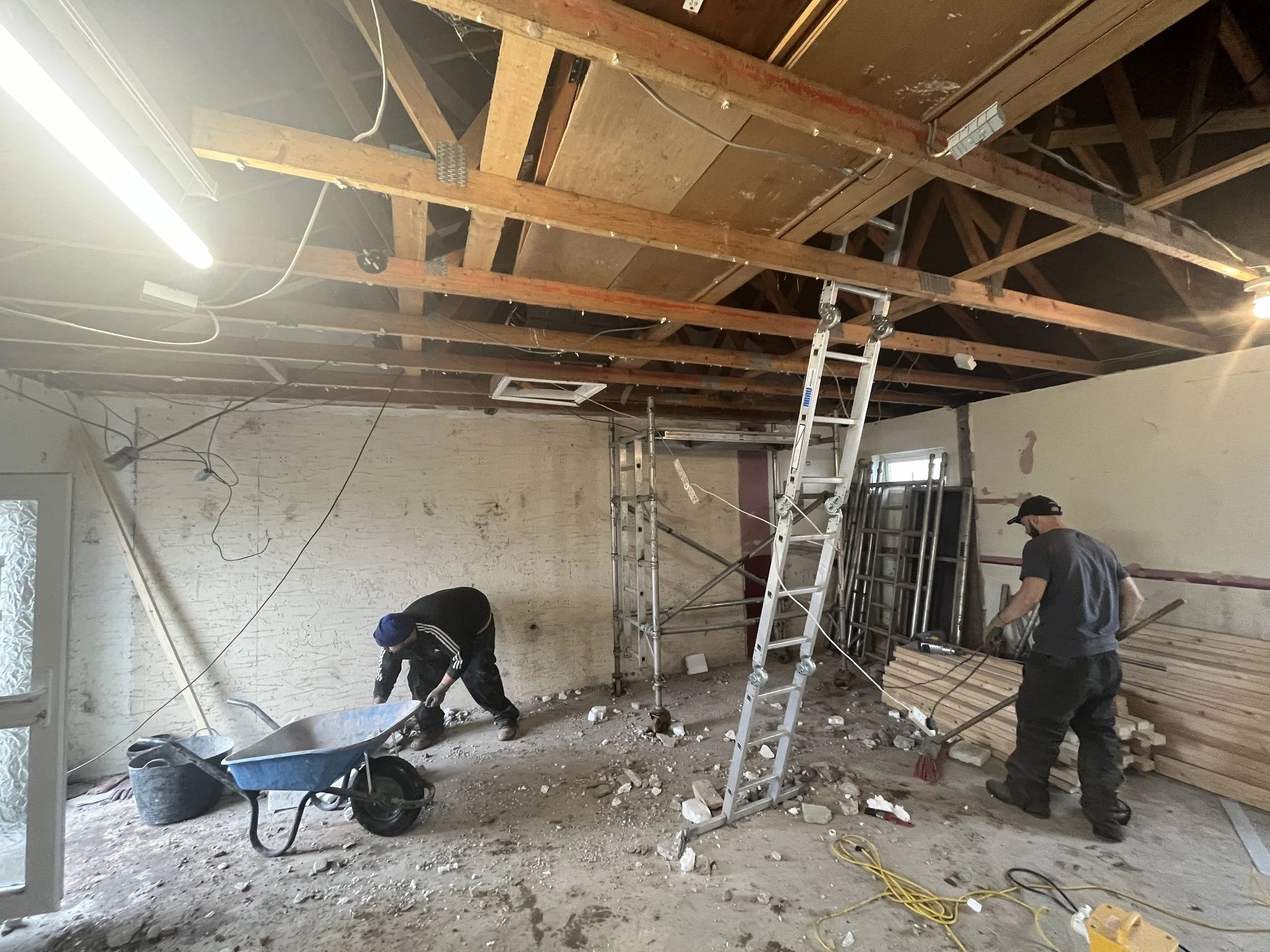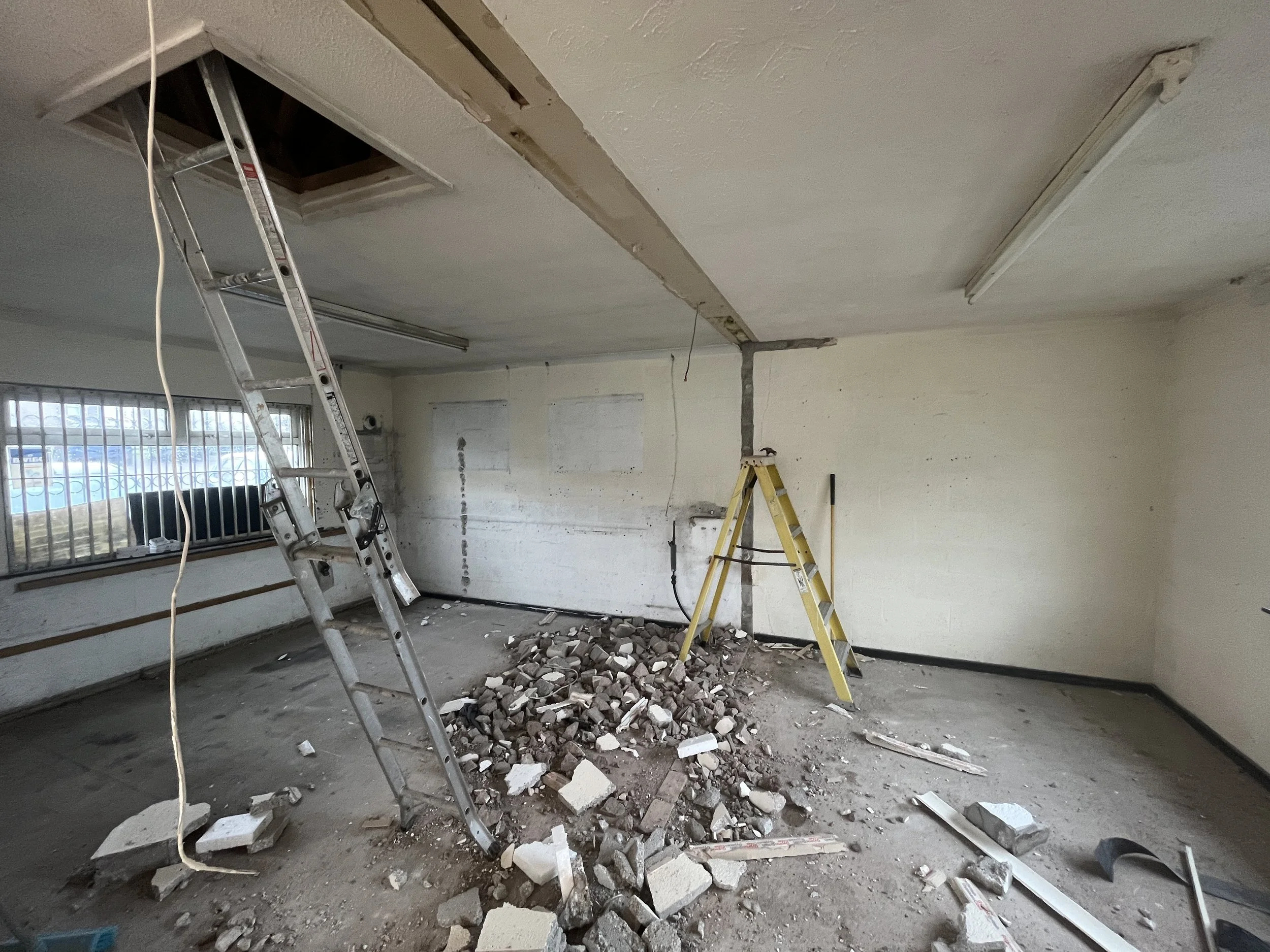 The first phase of the project involved a complete clear out of the existing pro-shop, workshop areas and the trolley room storage. We set up a temporary Pro-Shop at the back of the clubhouse while we ripped out the existing slat walling and counter units in the pro-shop and knocked down walls to create a magnificent open space that will go onto to be the new Pro-Shop and indoor academy area.